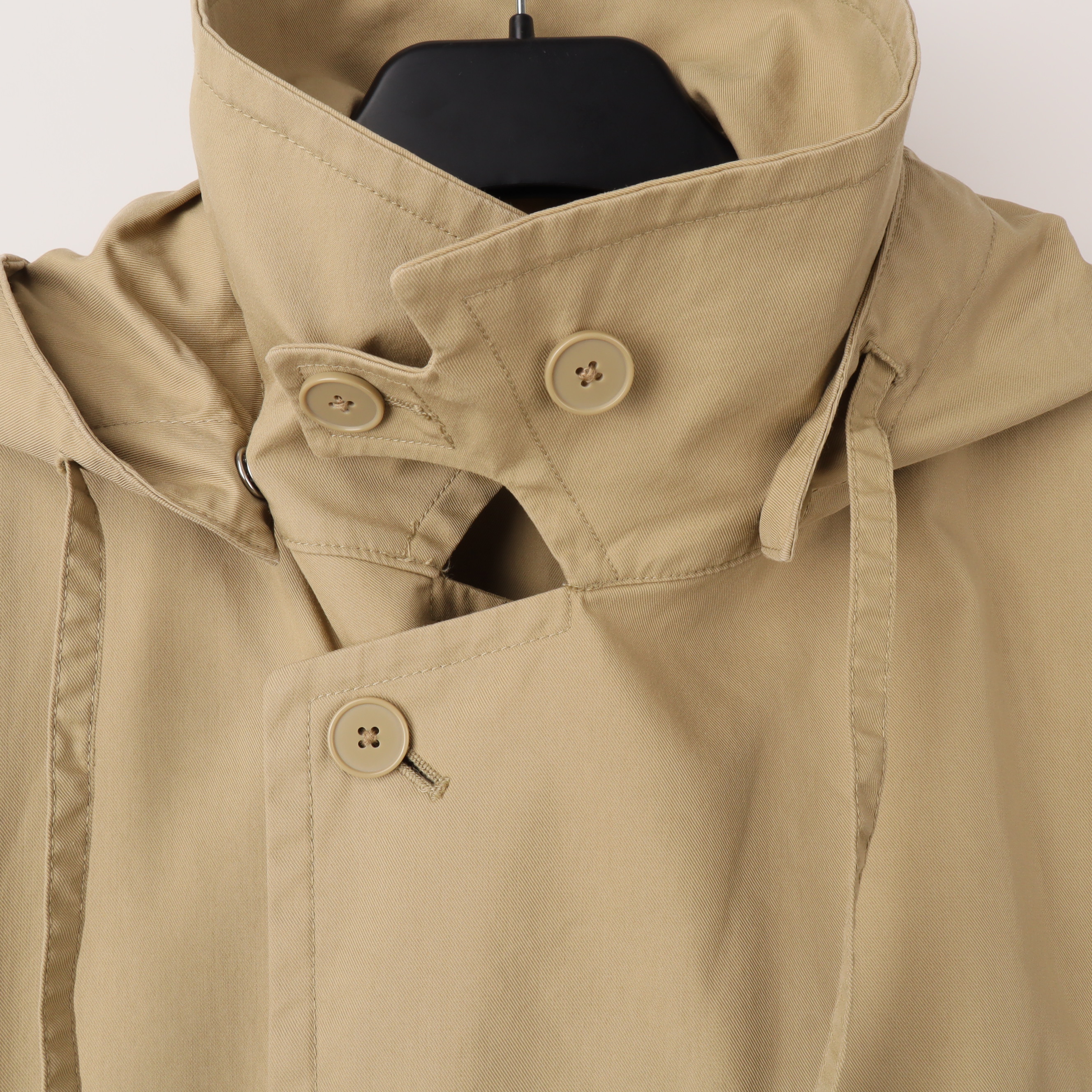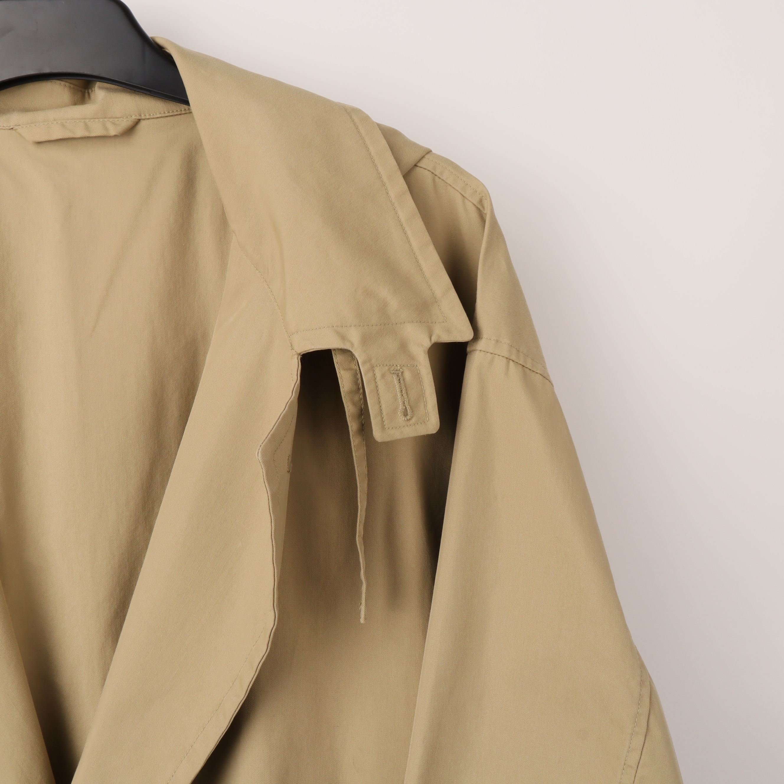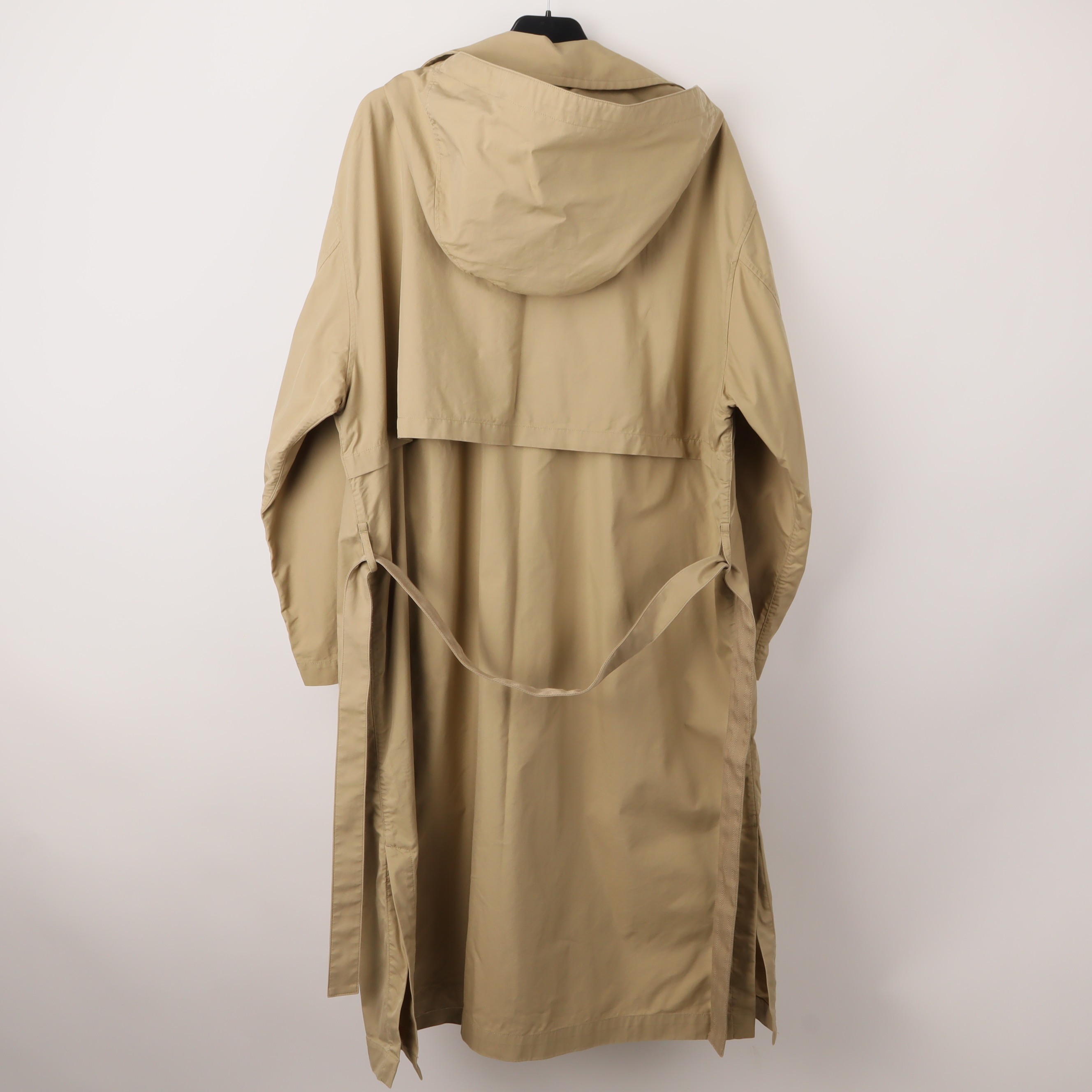 Denna eleganta beige trenchcoat erbjuder stil och komfort för kalla dagar. Tillverkad av högkvalitativt material bestående av 32% polyester, 31% bomull, och 24% nylon som garanterar både hållbarhet och skydd mot väder. Den justerbara huvan och dubbelknäppningen ger extra skydd mot vind och regn samtidigt som du behåller en modeinriktad stil. Trenchcoaten har en lös passform som ger utrymme för layering, vilket gör den idealisk för vinter och övergångsperioder. De rymliga fickorna på framsidan tillåter praktisk förvaring av nödvändigheter, och det justerbara bältet ger möjlighet att definiera midjan för en mer skräddarsydd look. Denna kappa är en stilren och funktionell klädsel för både vardag och speciella tillfällen, och dess tidslösa design gör den lättkombinerad med olika plagg och accessoarer i din garderob.