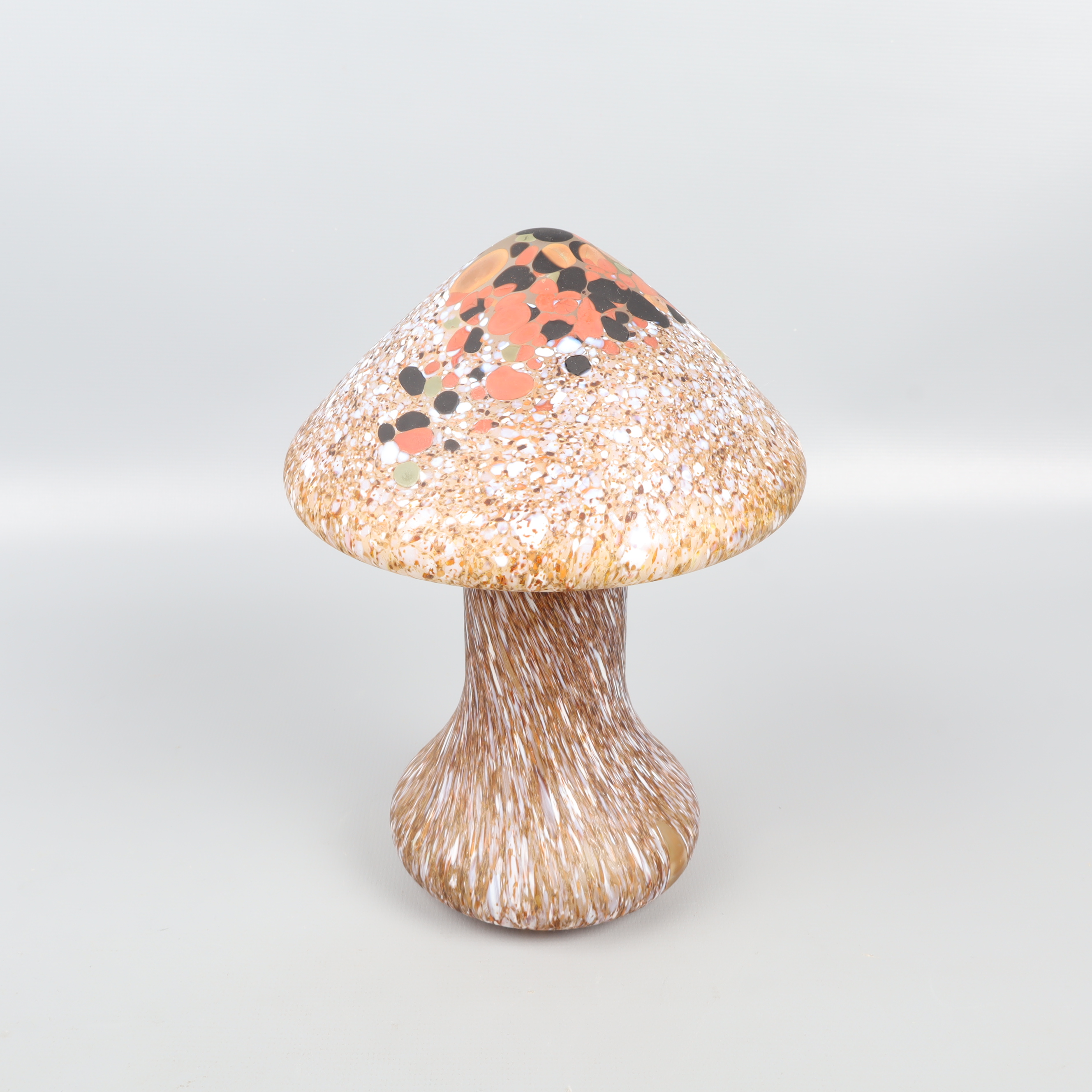 Denna unika dekorativa svampformade prydnad är perfekt för att ge en konstnärlig touch till ditt hem eller kontor. Tillverkad med noggrann uppmärksamhet på detaljer, erbjuder den ett vackert spel av färger och texturer som fångar blicken. Med sin svampform och fascinerande texturerad yta, passar den utmärkt som en samtalsstartare i vilket rum som helst. Den detaljerade designen på svamphatten har en intressant mönstring med prickar och nyanser av brun, vilket ger den ett naturligt utseende. Basen är lika elegant med en subtil, mönstrad finish som efterliknar bark eller jord. Denna dekoration är ett fantastiskt tillskott till alla inredningsstilar och kan placeras på ett soffbord, en hylla eller som en del av en mer omfattande dekoruppsättning. Den distinkta designen är både modern och tidlös, vilket gör den till en perfekt present eller ett minnesvärt inslag i ditt eget hem.