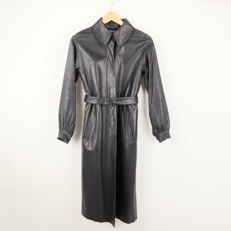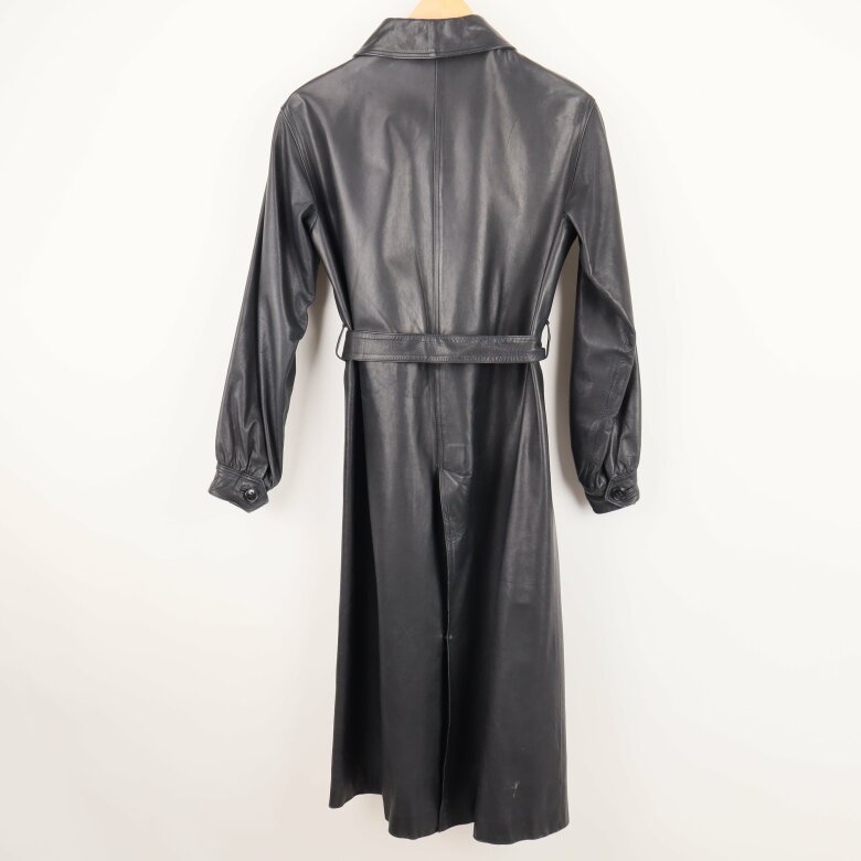 Elegant lång rock i svart läder, komplett med knappar och ett justerbart bälte för en skräddarsydd passform. Tillverkad med omsorg för att kombinera stil och komfort. Perfekt för kalla dagar.
