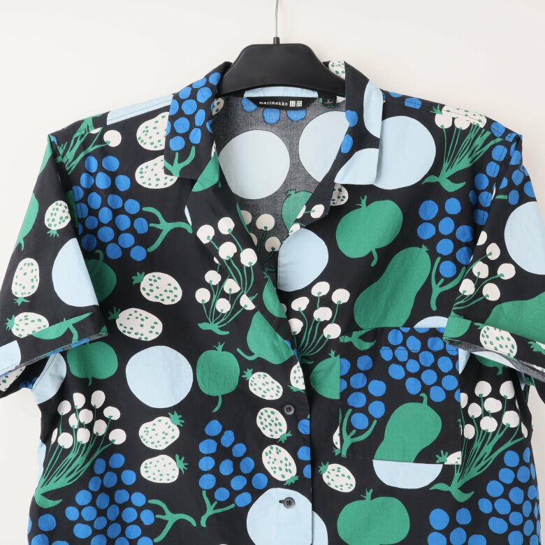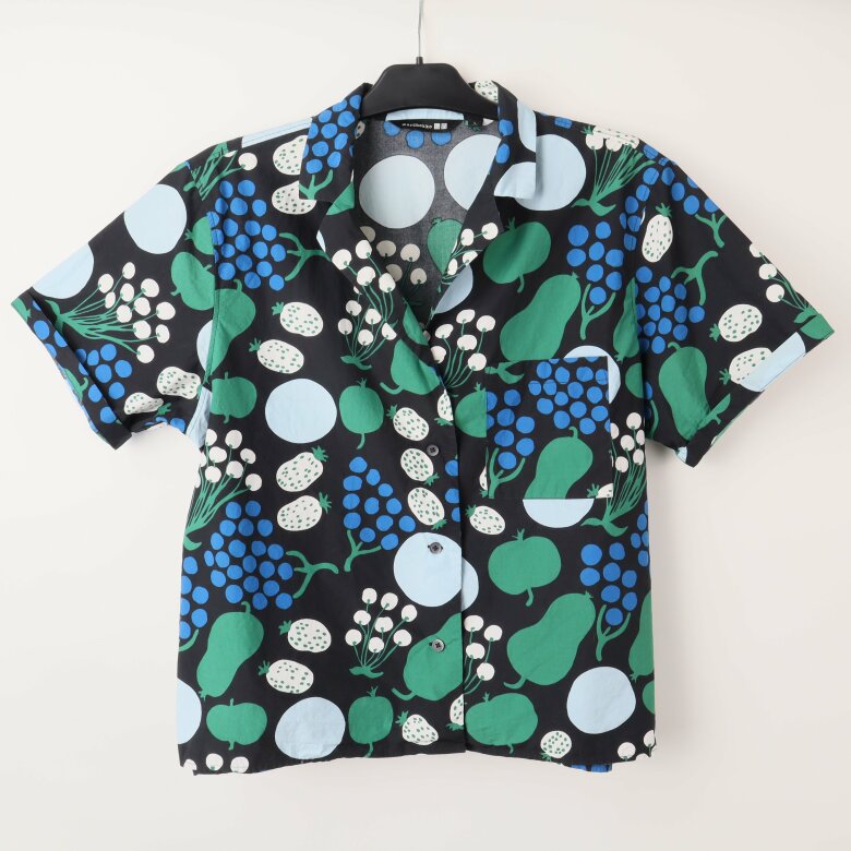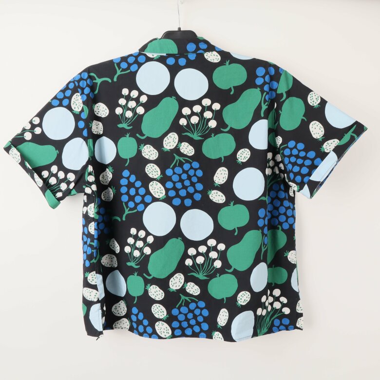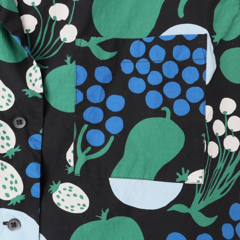 Kortärmad skjorta med färgglatt fruktmönster. Designad för en avslappnad stil, idealisk för sommaranvändning. Tillverkad av bekväm och lättviktig material för ökad komfort. Knappstängning framtill och en bröstficka för praktiska småsaker. Perfekt för en vardaglig och stilren look.