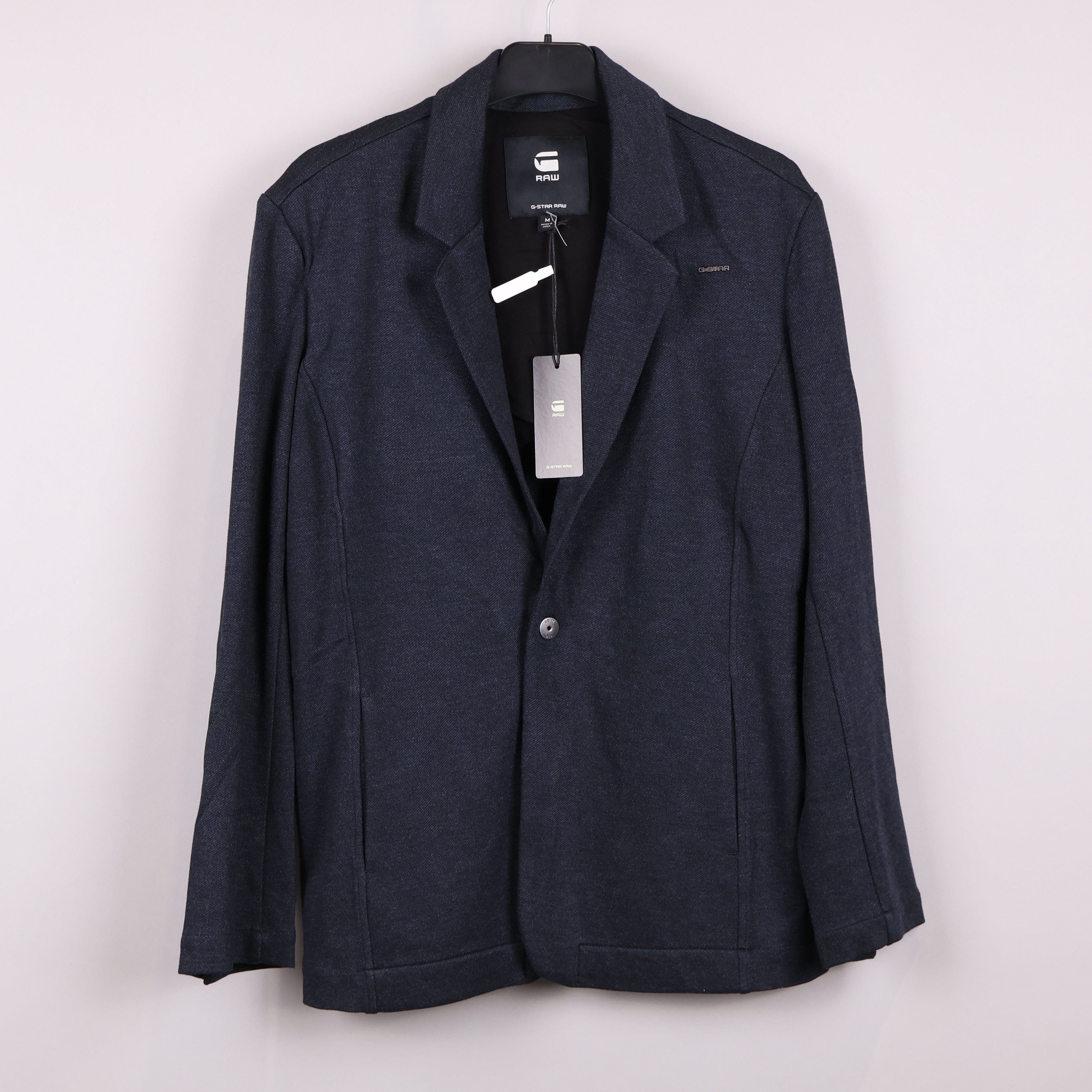 Stilren marinblå kavaj för herr från G-Star. Den har en elegant design med en diskret G-Star-logga vid bröstområdet. Tillverkad med en blandning av material som ger en skön och följsam passform. Enkelt knäppning framtill och lämplig för både formella och avslappnade tillfällen.
