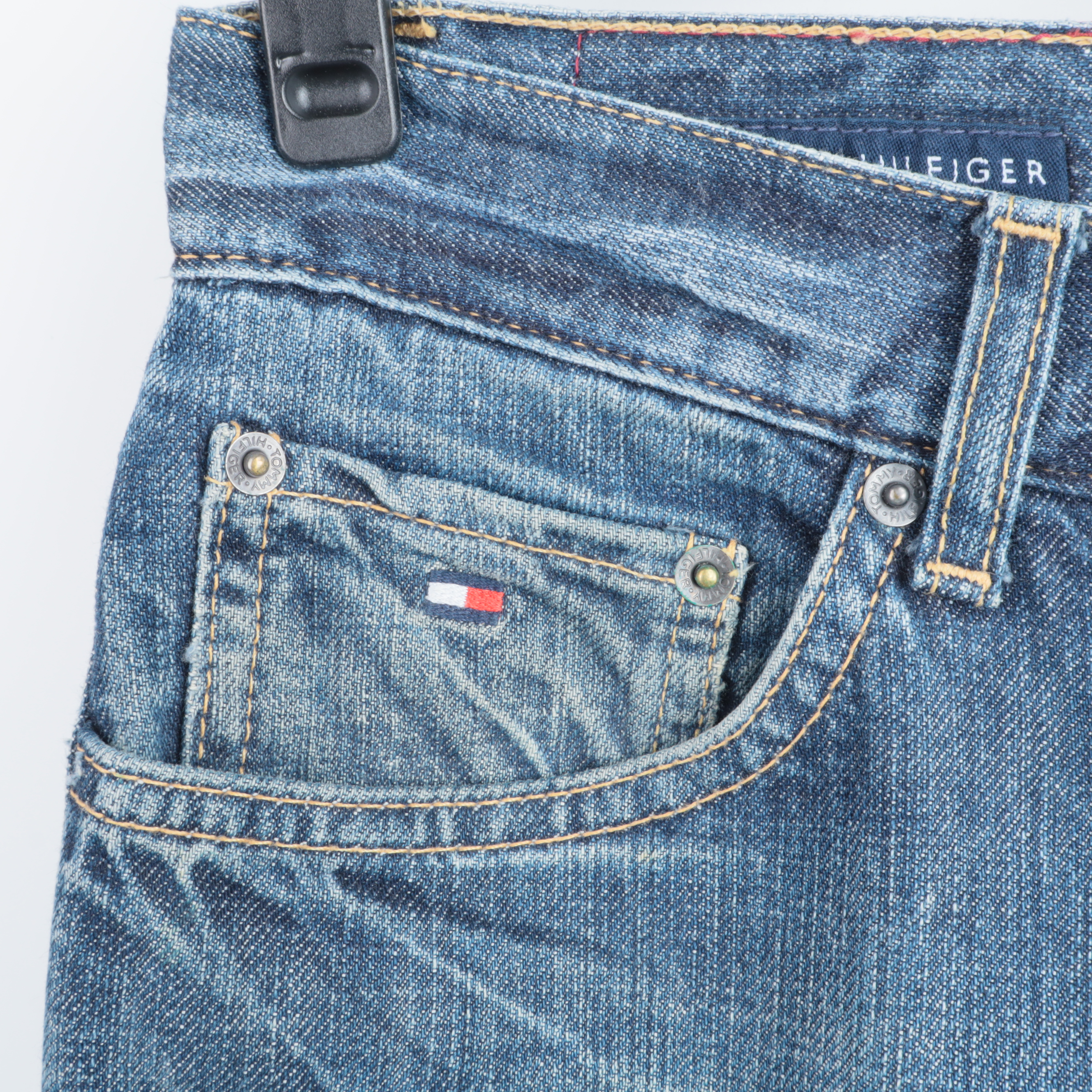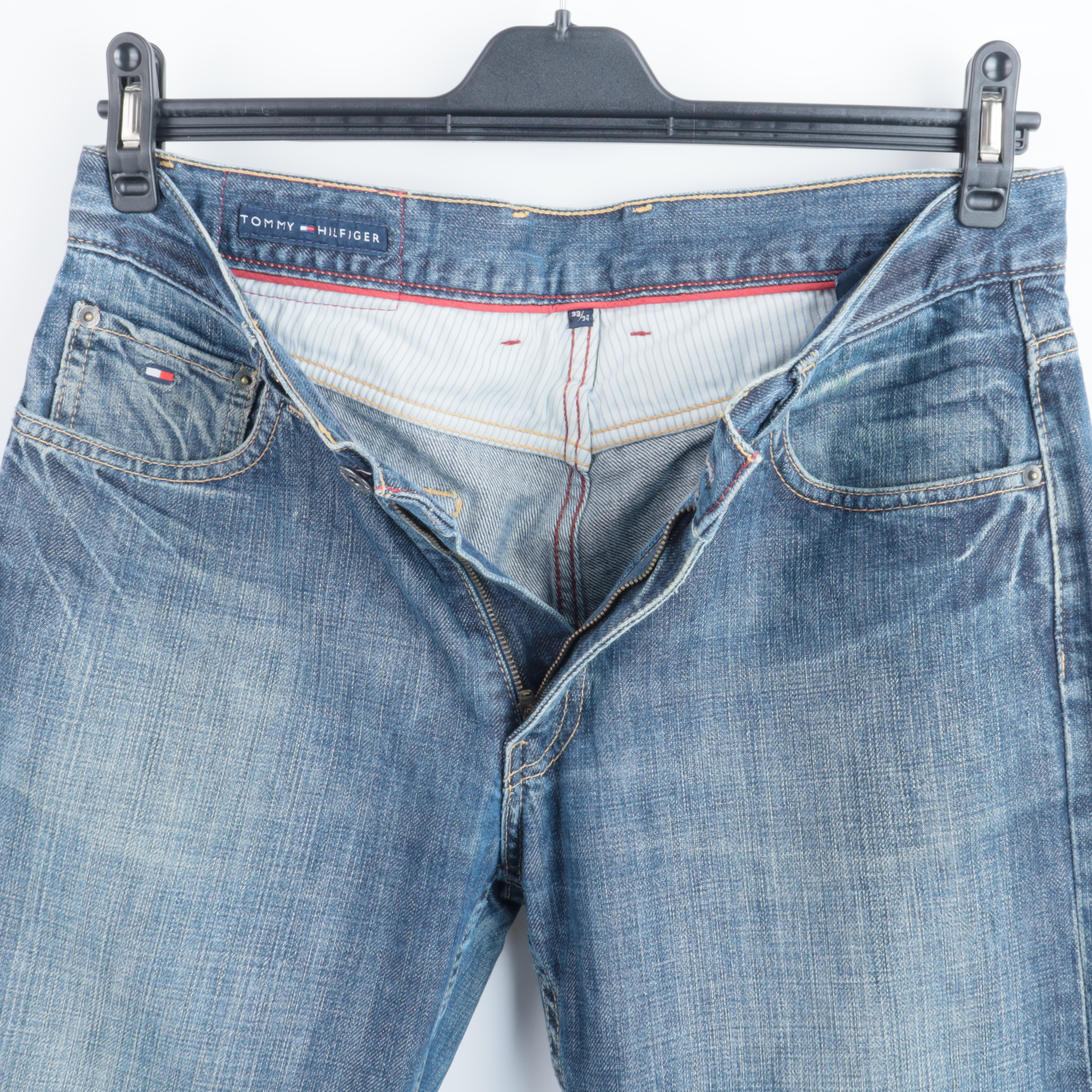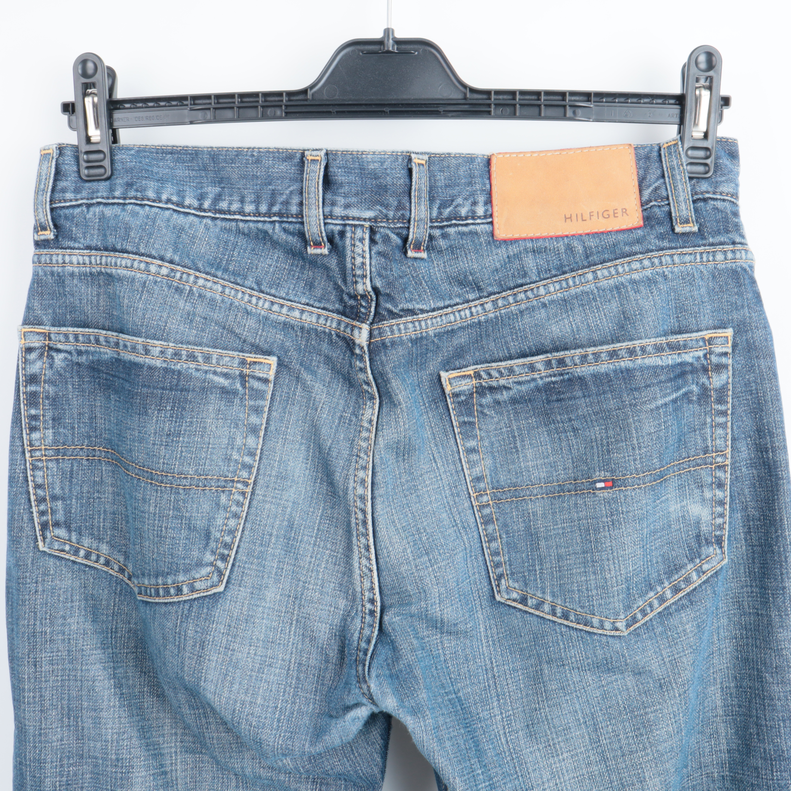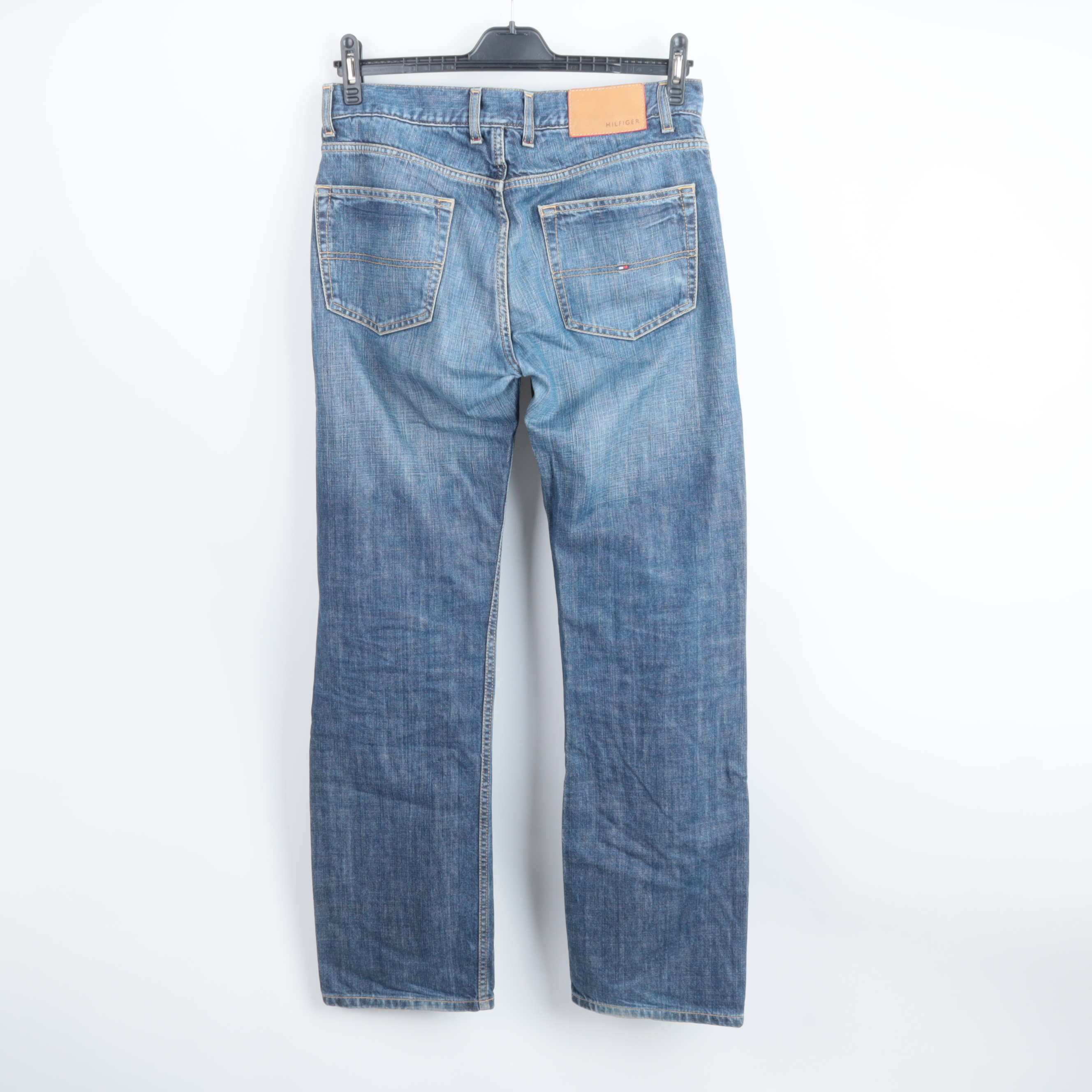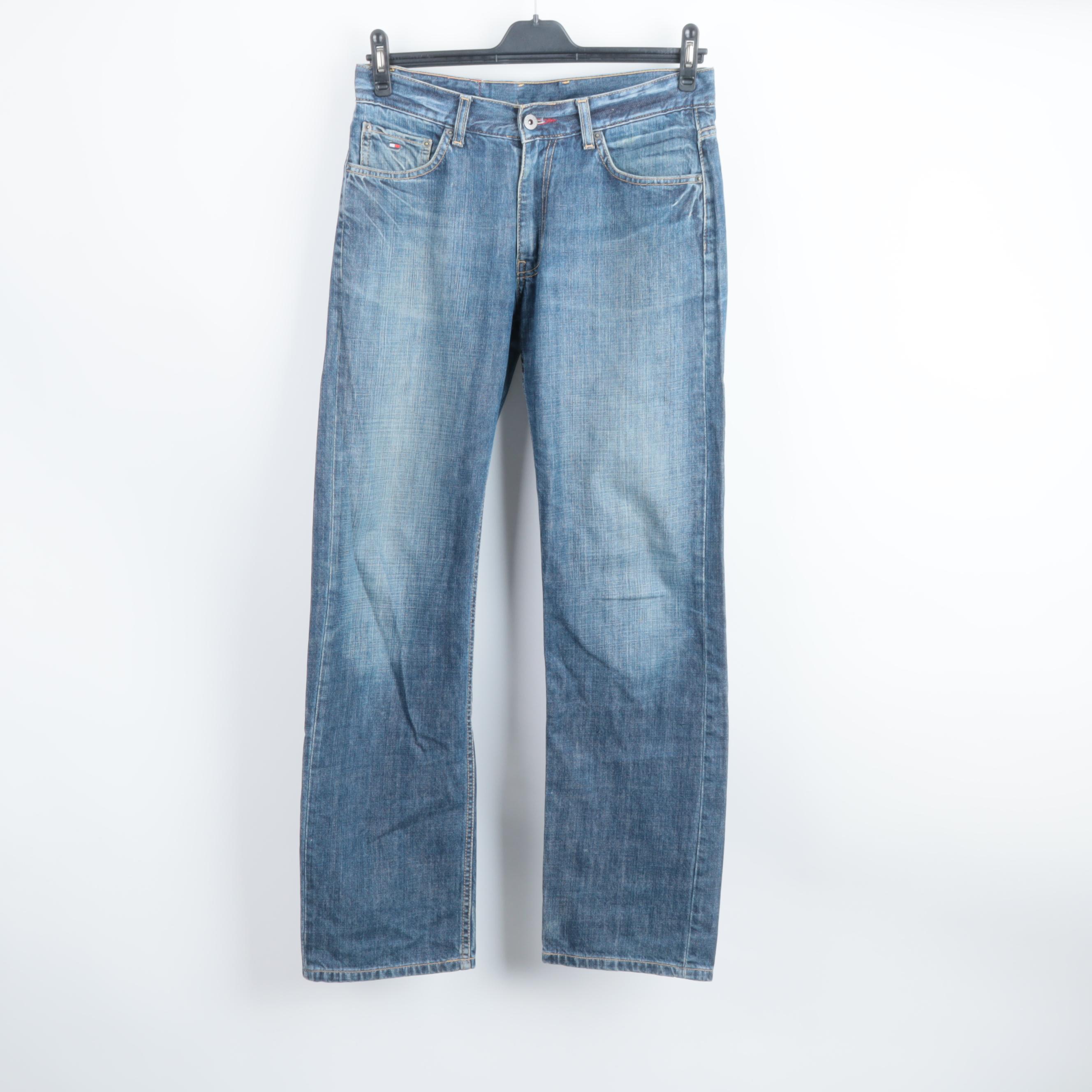 Blå jeans från Tommy Hilfiger erbjuder en tidlös stil för alla tillfällen. Tillverkade av 100% bomull, ger de en bekväm passform och hållbarhet som varar. Med en traditionell femfickdesign är dessa jeans både funktionella och stilfulla, idealiska för casual och mer uppklädda sammanhang. Den slitstarka denimkvaliteten kombinerat med en autentisk tvätt ger byxorna en vintage-inspirerad look, medan varumärkets diskreta logotypdetaljer på bakfickan och nära bältesslingan tillför en exklusiv finish. Jeansens raka snitt gör dem lätta att styla med vilken outfit som helst, från t-shirts till skjortor och jackor, vilket gör dem till ett måste i varje garderob.