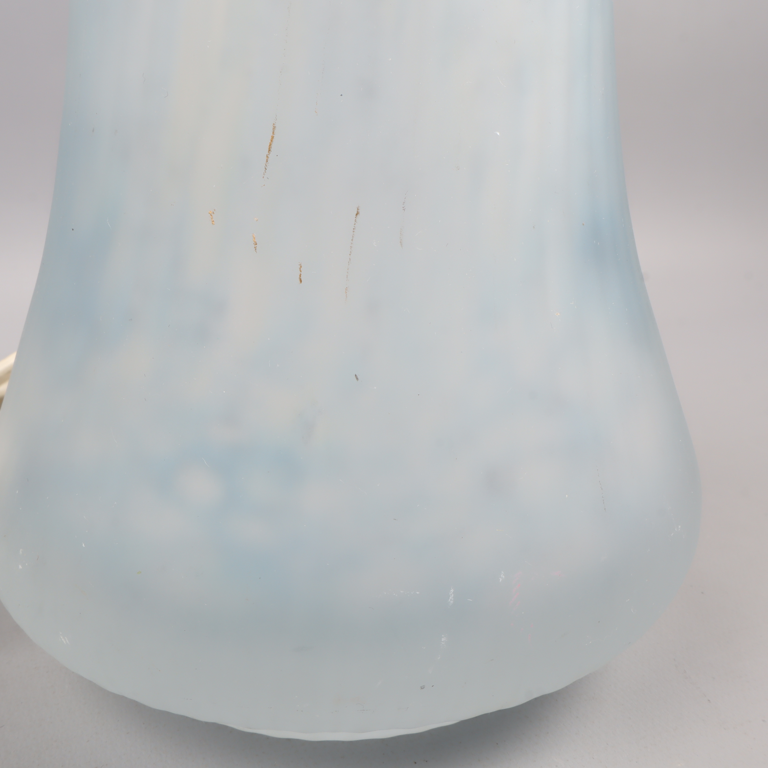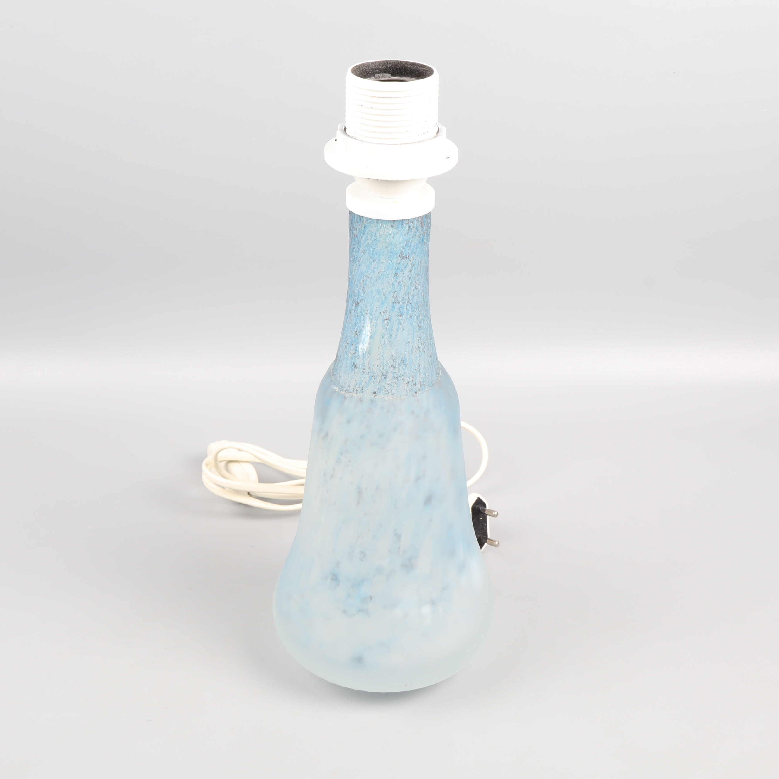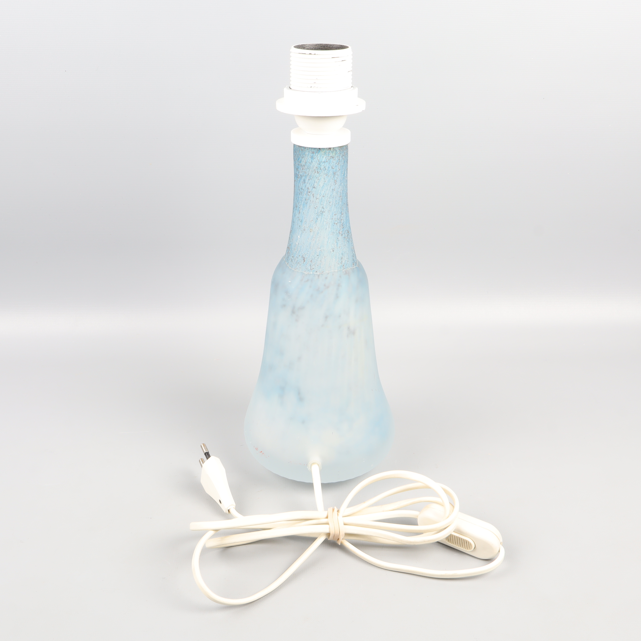 Denna unika lampfot är tillverkad av glas och har en elegant form som passar perfekt i alla moderna hem. Med en vacker ljusblå nyans ger den ett fridfullt och stilrent intryck, vilket gör den till ett idealiskt komplement till vilket rum som helst. Glasets subtila mönster och textur skapar intressanta ljuseffekter när lampan är tänd, vilket förhöjer stämningen i rummet. Den är utrustad med en sladd och strömbrytare för enkel användning. Perfekt som läslampa i vardagsrummet eller som en dekorativ detalj på nattduksbordet. Den stabila designen säkerställer ett säkert och funktionellt bruk. Den stilrena formen och den mjuka färgpaletten gör denna lampfot till ett tidlöst tillskott i ditt hem.