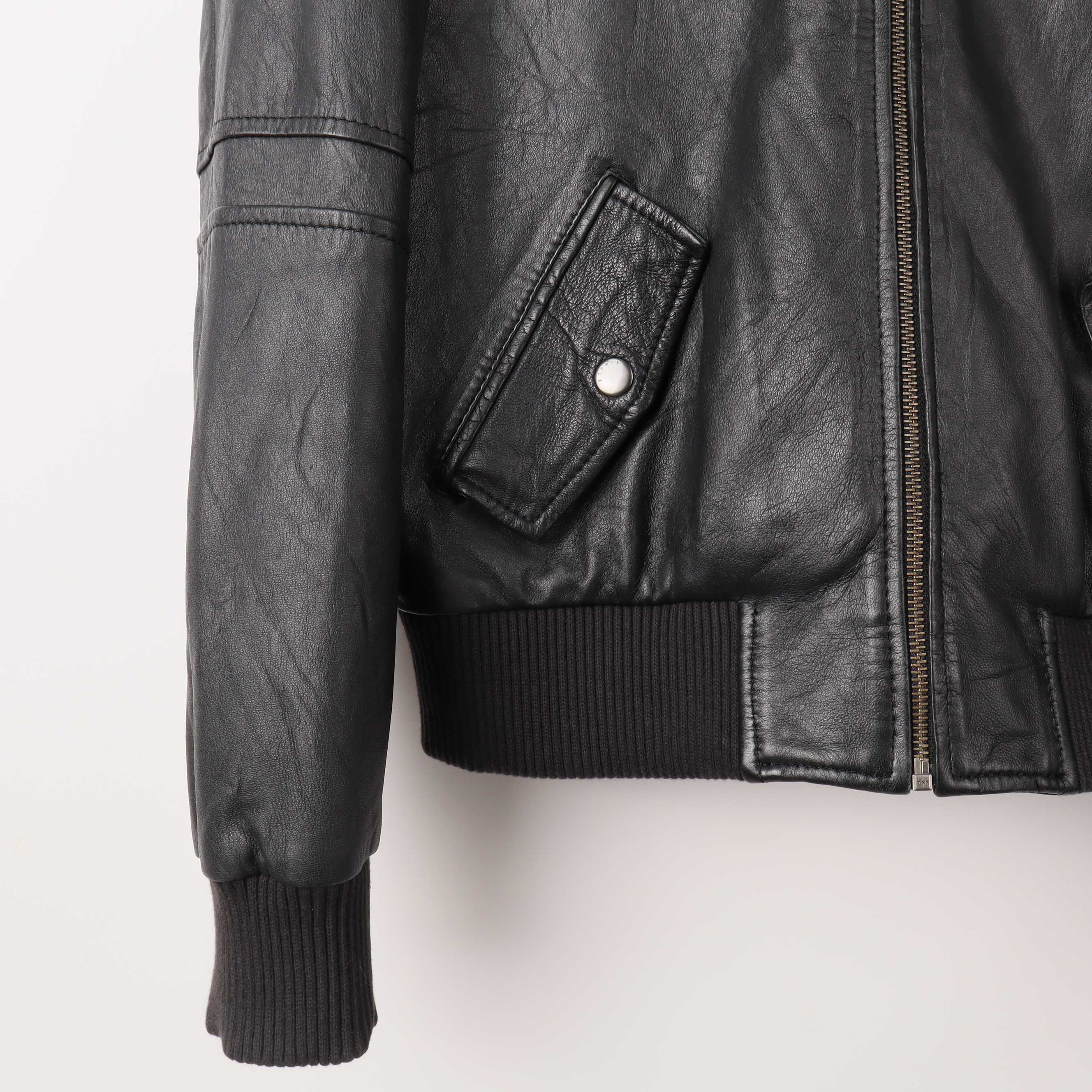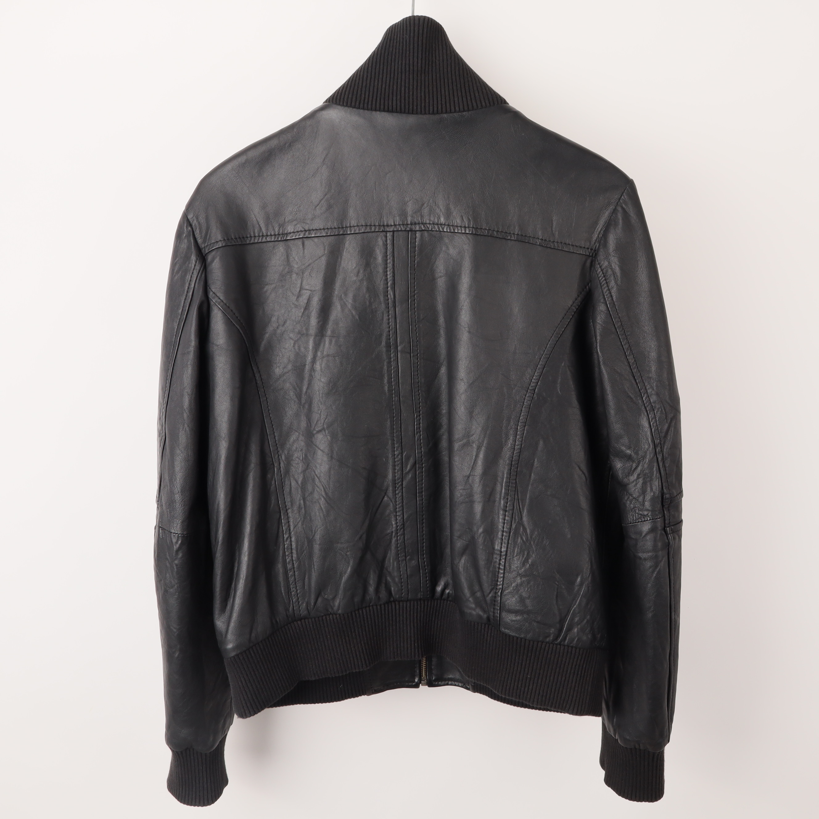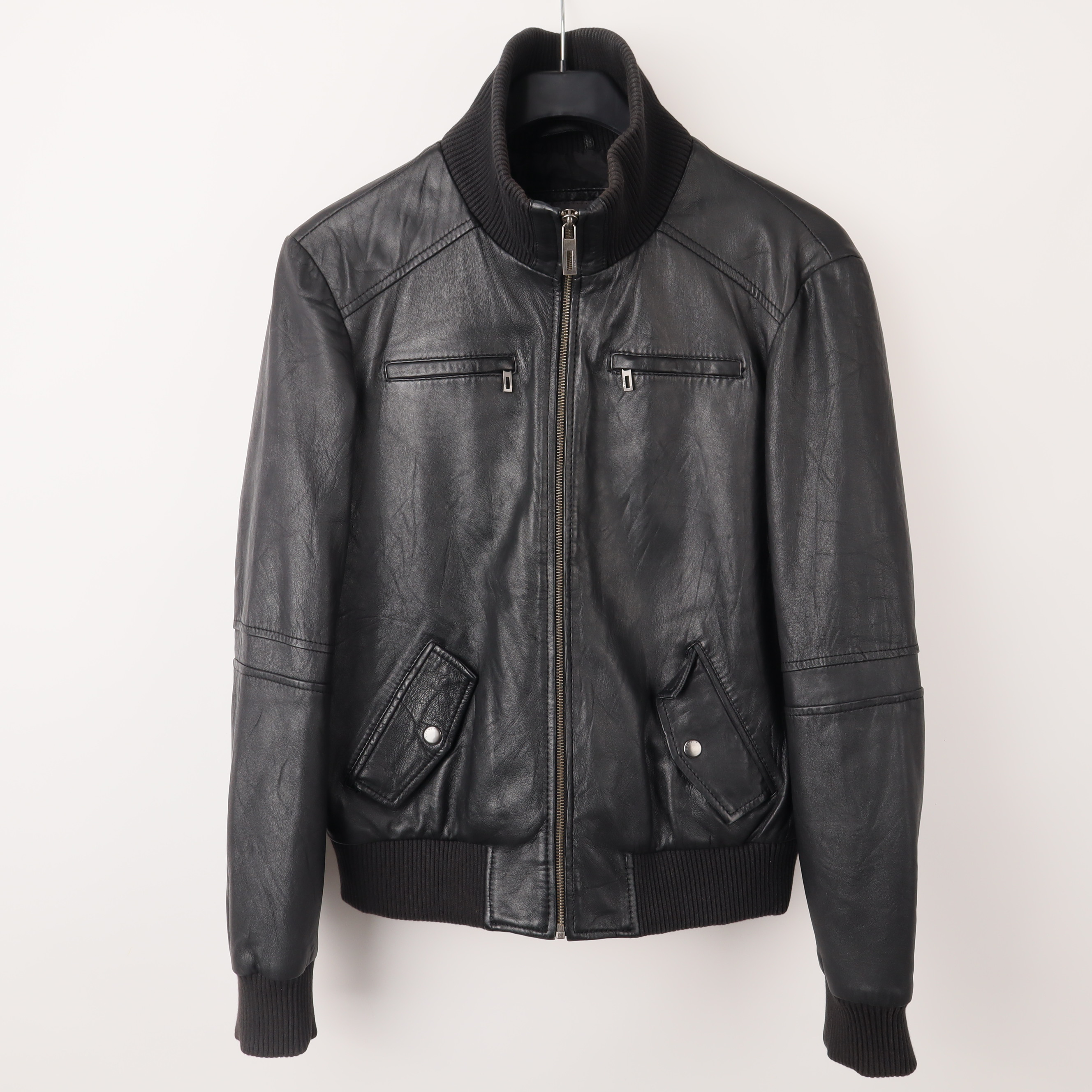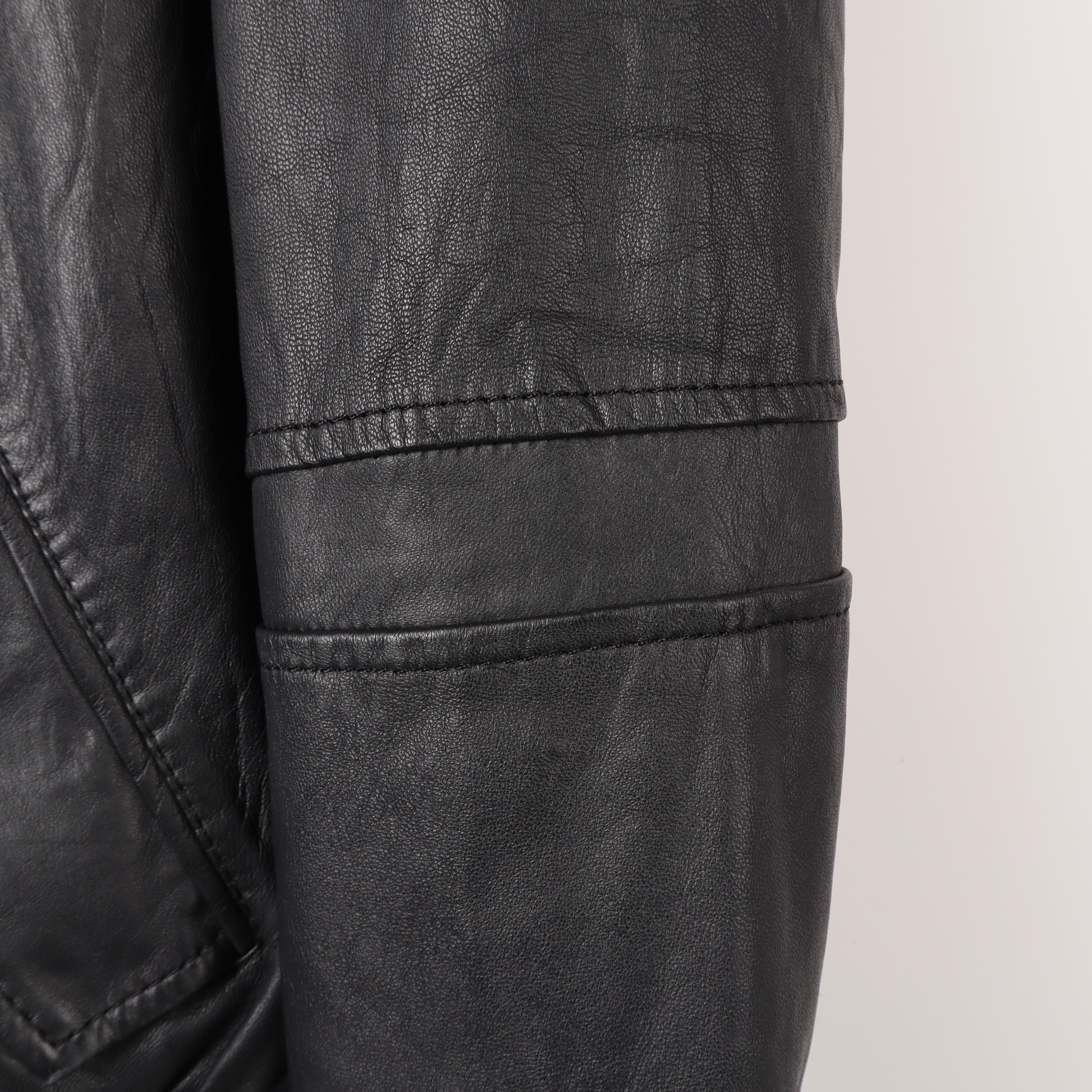 Denna stilrena svarta skinnjacka med ribbade detaljer erbjuder en perfekt blandning av stil och komfort. Tillverkad av högtkvalitativt skinn, ger den både hållbarhet och en trendig look. Jackan har flera fickor som ger både praktiska förvaringslösningar och en touch av stilistisk detalj. Den ribbade kragen, muddar och nederkant ger en snygg kontrast till det släta skinnet samtidigt som det säkerställer en god passform som håller ute kylan. Den har en robust dragkedja som ger en säker och enkel stängning. Med sitt tidlösa design är denna jacka optimal för både vardagligt bruk och speciella tillfällen, vilket gör den till ett värdefullt tillskott i varje garderob.